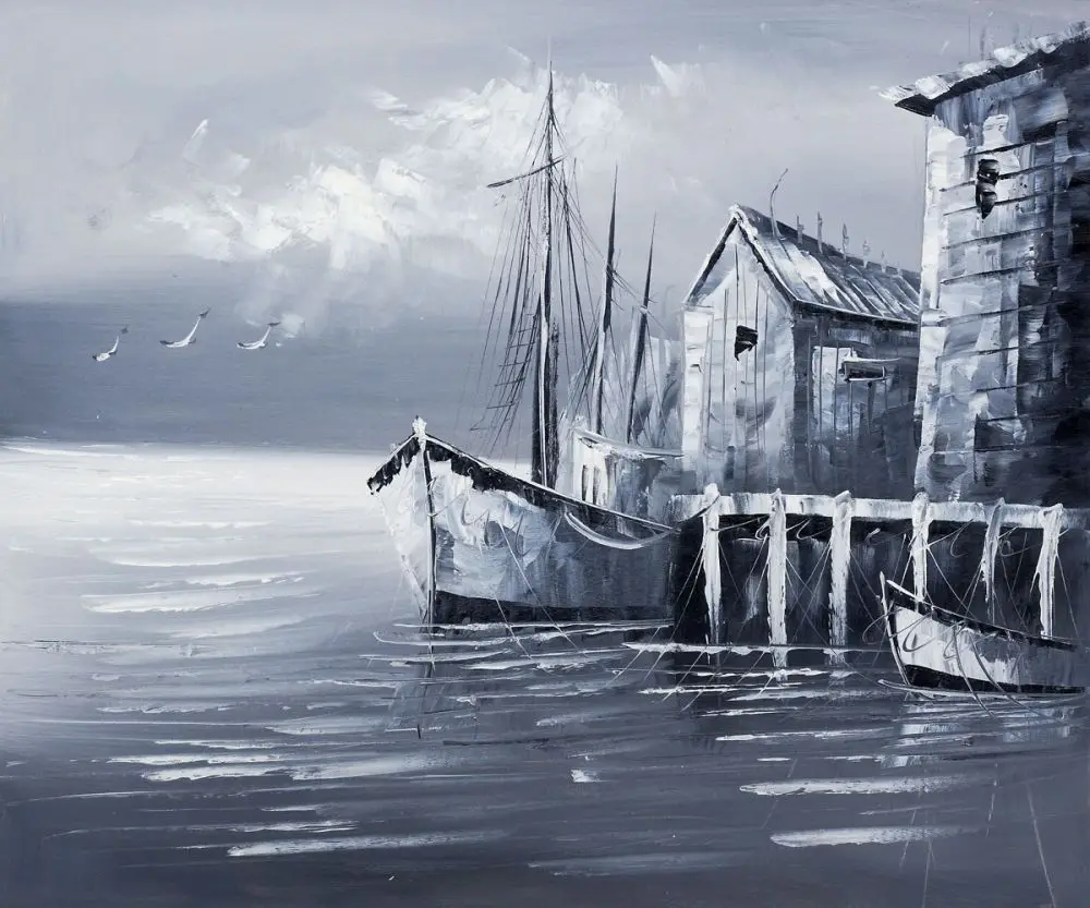 Putih Dan Hitam P Icture Lukisan Perahu Lukisan Minyak Laut Modern Yang Kanvas Cetakan Dinding Seni Untuk Dekorasi Rumah 24 X 24 Paintings Of Boats Canvas Printswall Art Aliexpress